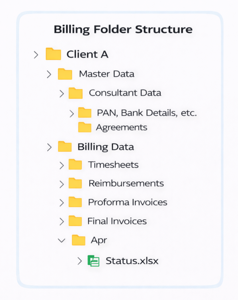 Since it was a startup, the team was initially small, volumes were manageable, and coordination was mostly informal. Invoicing was therefore handled manually. However, as the business expanded – with more clients, more consultants, and increasing billing variations – the same system began causing delays and confusion.